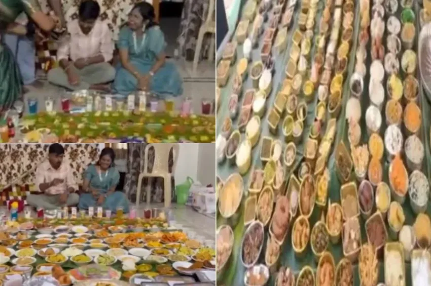 ஆந்திராவில் சங்கராந்தி (பொங்கல்) பண்டிகையின் போது புதுமாப்பிள்ளைகளுக்கு இதுபோன்று 100-க்கும் மேற்பட்ட உணவுகளைப் பரிமாறிச் சிறப்பிப்பது ஒரு கௌரவமான பாரம்பரியமாகப் பார்க்கப்படுகிறது. அதேபோல் இந்த ஆண்டும் பல இடங்களில் இத்தகைய பிரம்மாண்ட விருந்துகள் களைகட்டின.