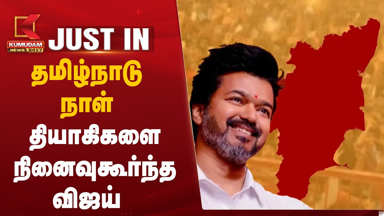 எல்லைப் போராளிகளின் தியாகங்களை நினைவு கூருவோம் என தமிழ்நாடு தினத்தை முன்னிட்டு தமிழக வெற்றிக் கழக தலைவர் விஜய் வாழ்த்து தெரிவித்துள்ளார்.